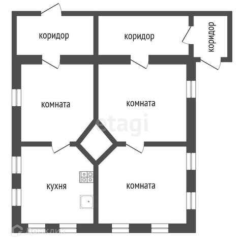 Три комнаты,кухня, санузел.