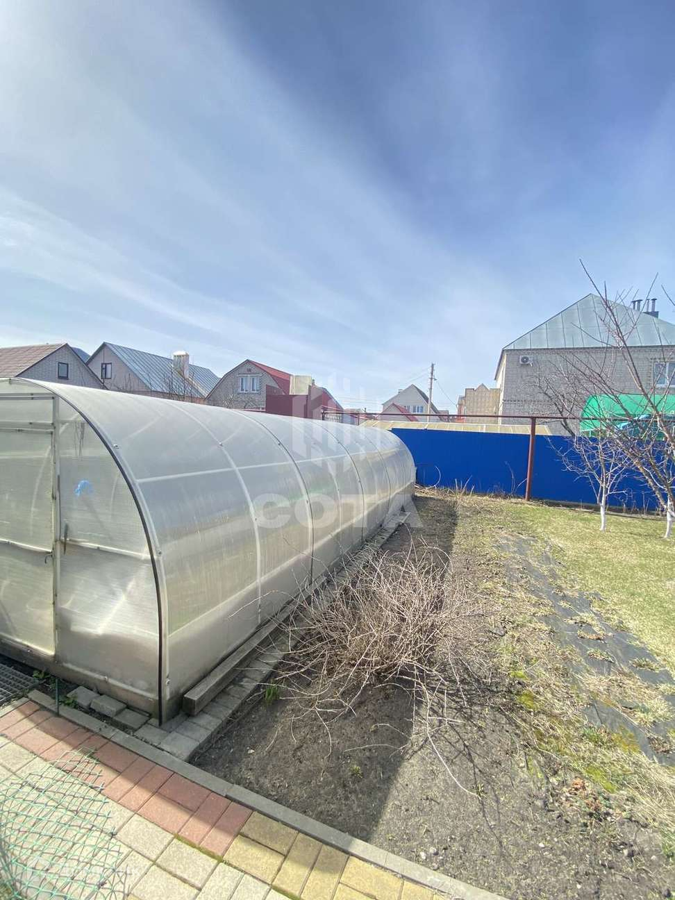 Дом состоит из двух этажей и находится на земле площадью 6 соток. Участок ровный и ухоженный с многочисленными плодовыми деревьями и кустарниками. Также к дому пристроен гараж, плюс парковочное место возле дома. Есть летняя кухня, цокольный этаж, подсобное помещение, теплица на придомовой территории.