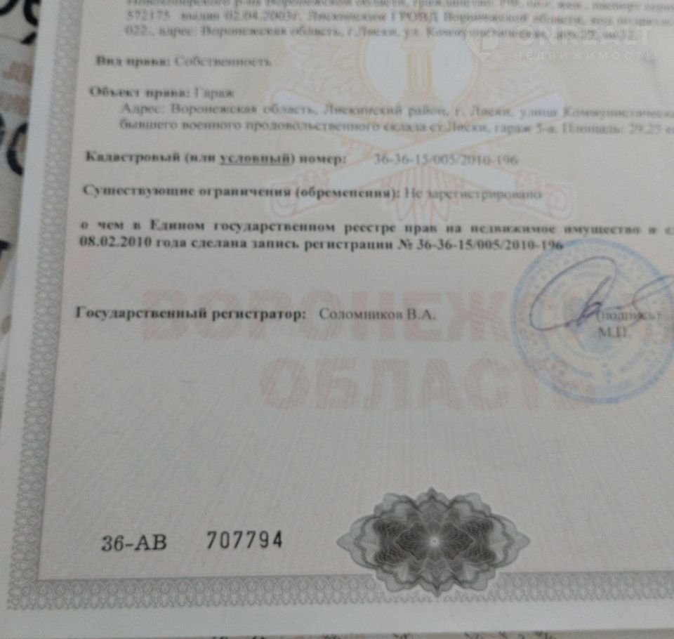 Кирпичный гараж, 30 м2, на продажу в Лисках, Привокзальная площадь