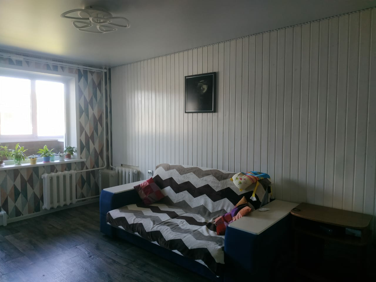 !!!НЕ ЗВОНИТЕ ПО ЭТОМУ ОБЪЯВЛЕНИЮ, КВАРТИРА ПРОДАНА!!! Продается 1-к квартира. Год назад был сделан ремонт. Поменяны ванна и туалет полностью, двери, окна, обои, линолиум(в комнате под линолеумом слой осб-12). Застеклённая и утеплённая лоджия с внутренней отделкой, на потолке в комнате пенофол фольгированый 1см, поверх натяжной потолок. Летом прохладно, зимой тепло. На потолке кухни пластиковые панели, обеденная зона оформлена деревянной вагонкой, кухонного гарнитура как такового нет. В прихожей большая полка для коробок и большая вешалка (на фото нет, т.к. там много личных вещей). Дивану год, стенке пол года,  бытовая техника в отличном состоянии. Делалось всё для себя и на совесть. В добавок ко всему - прекрасное расположение. Во дворе детская площадка, рядом лес с велодорожкой, поблизости школа, магнит, пятёрочка, аптеки, пункты выдачи валдберис и озон, рядом автобусная остановка. По сути для проживания всё есть.  Звоните в любой день с 10-00 до 20-00.