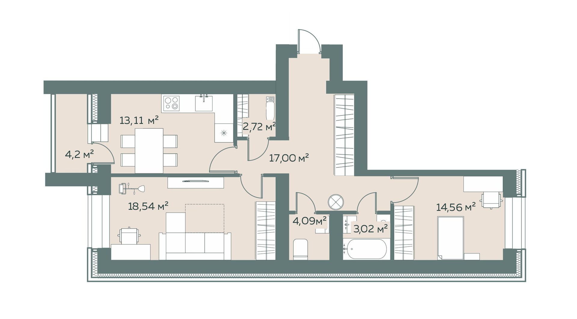 Площадь кухни 13.11 м2
