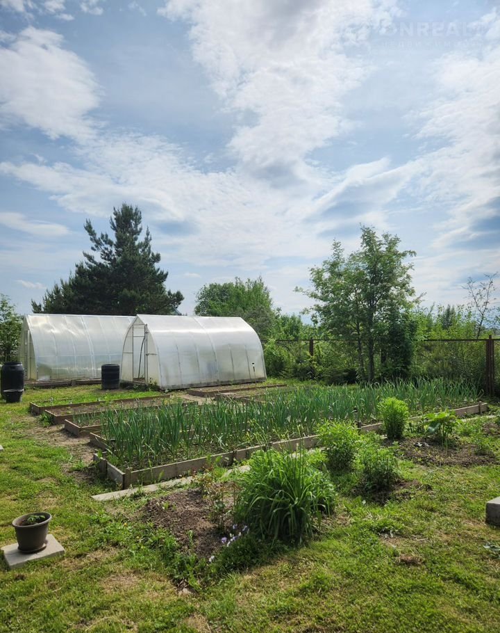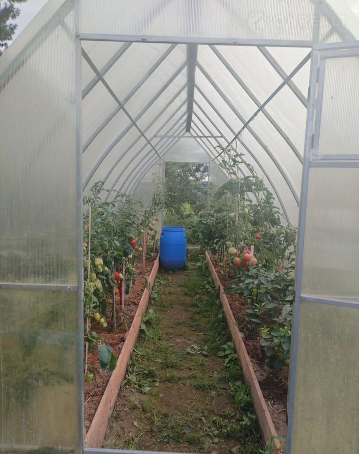УЧАСТОК 12 СОТОК сухой, ровный, сделан дренаж, огорожен забором из проф.листа и сетка рабица. На участке две большие теплицы, грядки, хозпостройка, выделено место для постройки бани.