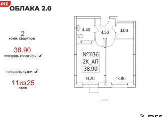 Продам двухкомнатную квартиру, 38.9 м2, жилой комплекс Облака 2.0, к1.2
