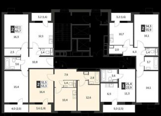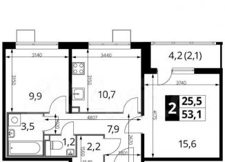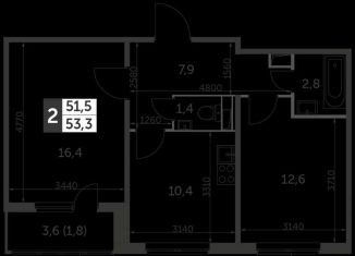 Двухкомнатная квартира на продажу, 52.6 м2