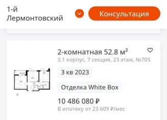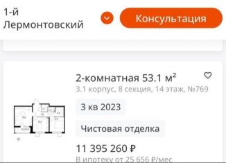 Двухкомнатная квартира на продажу, 53.1 м2, жилой комплекс 1-й Лермонтовский, к3.1