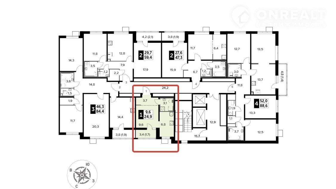 Общая площадь 26.6 м2