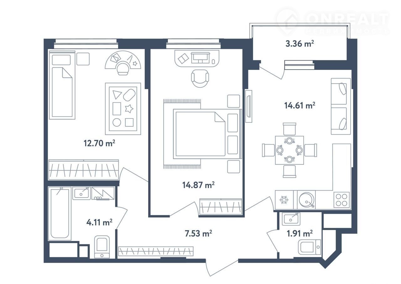 Общая площадь 53.7 м2