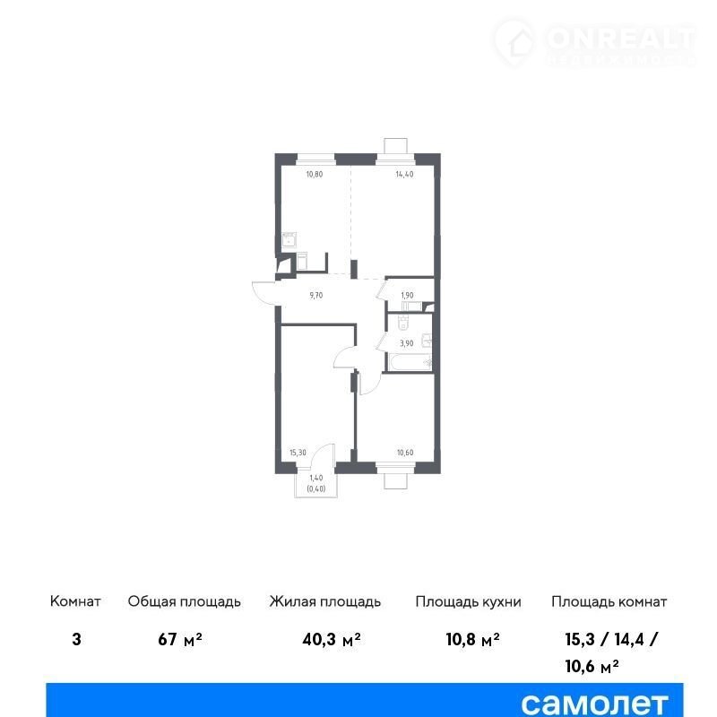 Общая площадь 67 м2