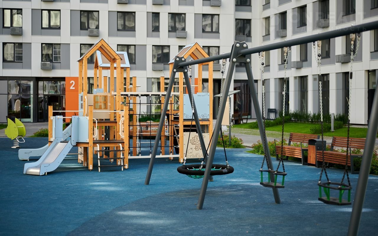 Конфигурация проекта предполагает закрытые от машин дворы или разграничение приватных и публичных территорий, а также формирование озелененных внутриквартальных пешеходных связей и благоустройство территорий общего пользования. Освобождение придомовой территории от автомобилей - это ответственный подход не только к безопасности, но и к благоустройству внутреннего пространства комплекса.