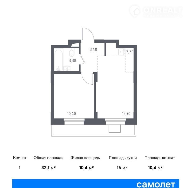 Общая площадь 32.1 м2