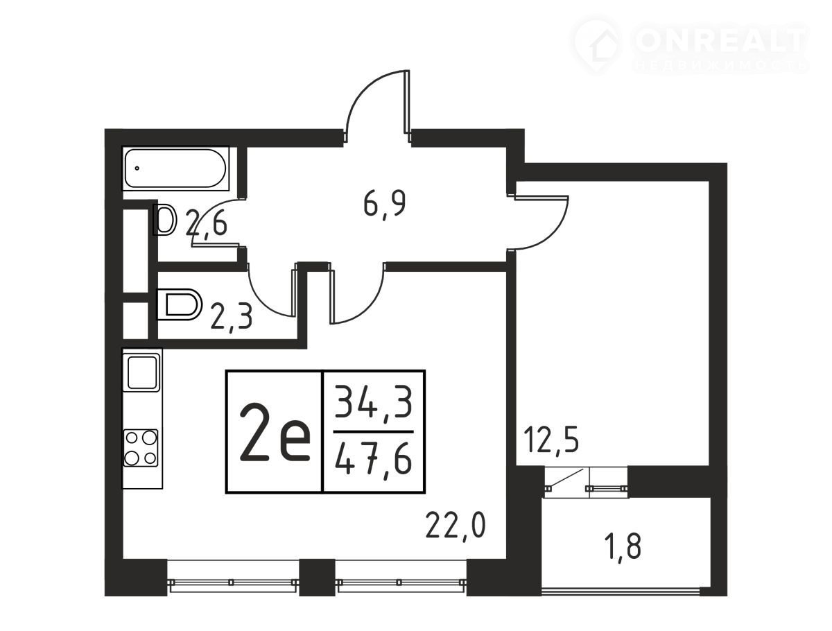 Общая площадь 47.6 м2