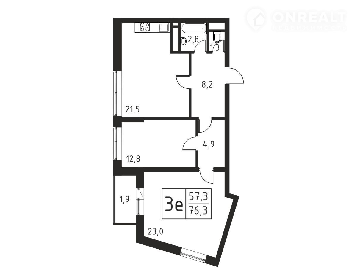Общая площадь 76.3 м2