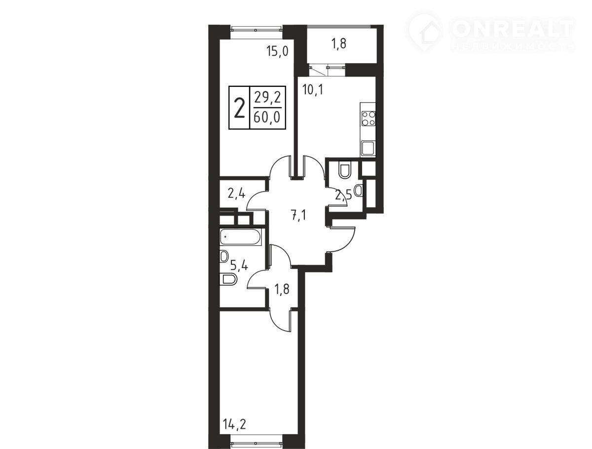 Общая площадь 60 м2