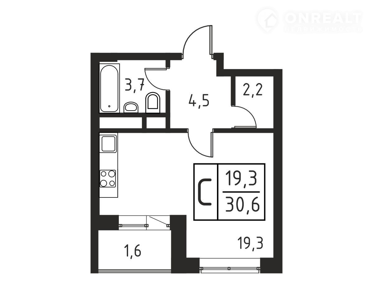 Общая площадь 30.6 м2