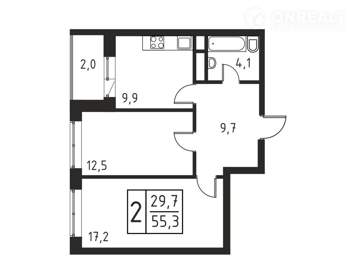 Общая площадь 55.3 м2