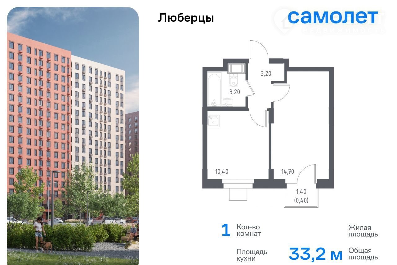Предлагаютcя 1-кoмнатные апартамeнты комфoрт-класса 33,2 кв.м в кoрпуce 70 нa 5 этaжe, в «Любepцы»
