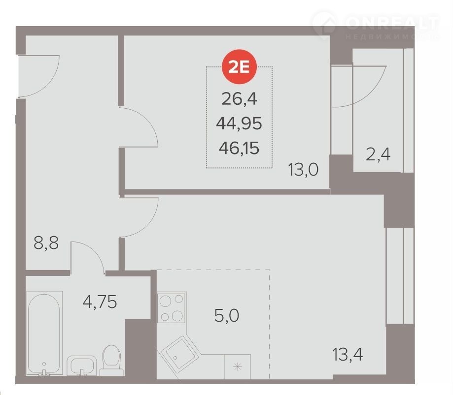 Общая площадь 46.2 м2