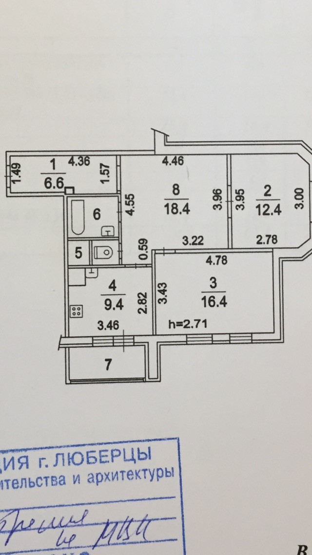 Балкон, лоджия 1 балкон