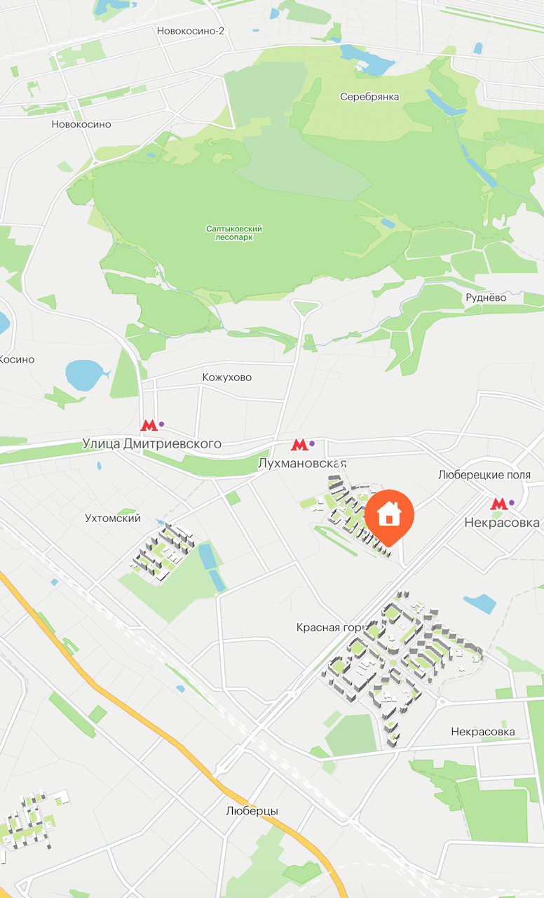 ЖК Люберецкий расположен рядом с районом Некрасовка, до метро Лухмановская 5 минут пешком, до станции Выхино и ЖД станции Люберцы-1 десять минут на общественном транспорте.