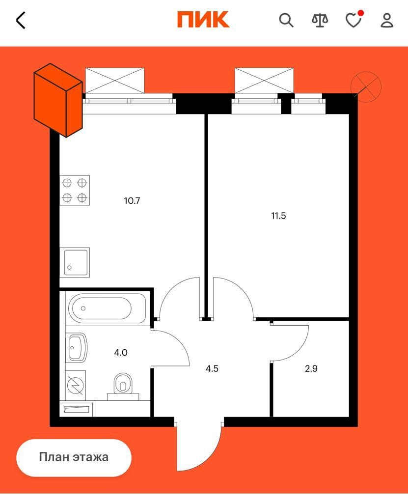 Удобная планировка: выделен гардероб, большая кухня-гостиная, отдельная спальня.