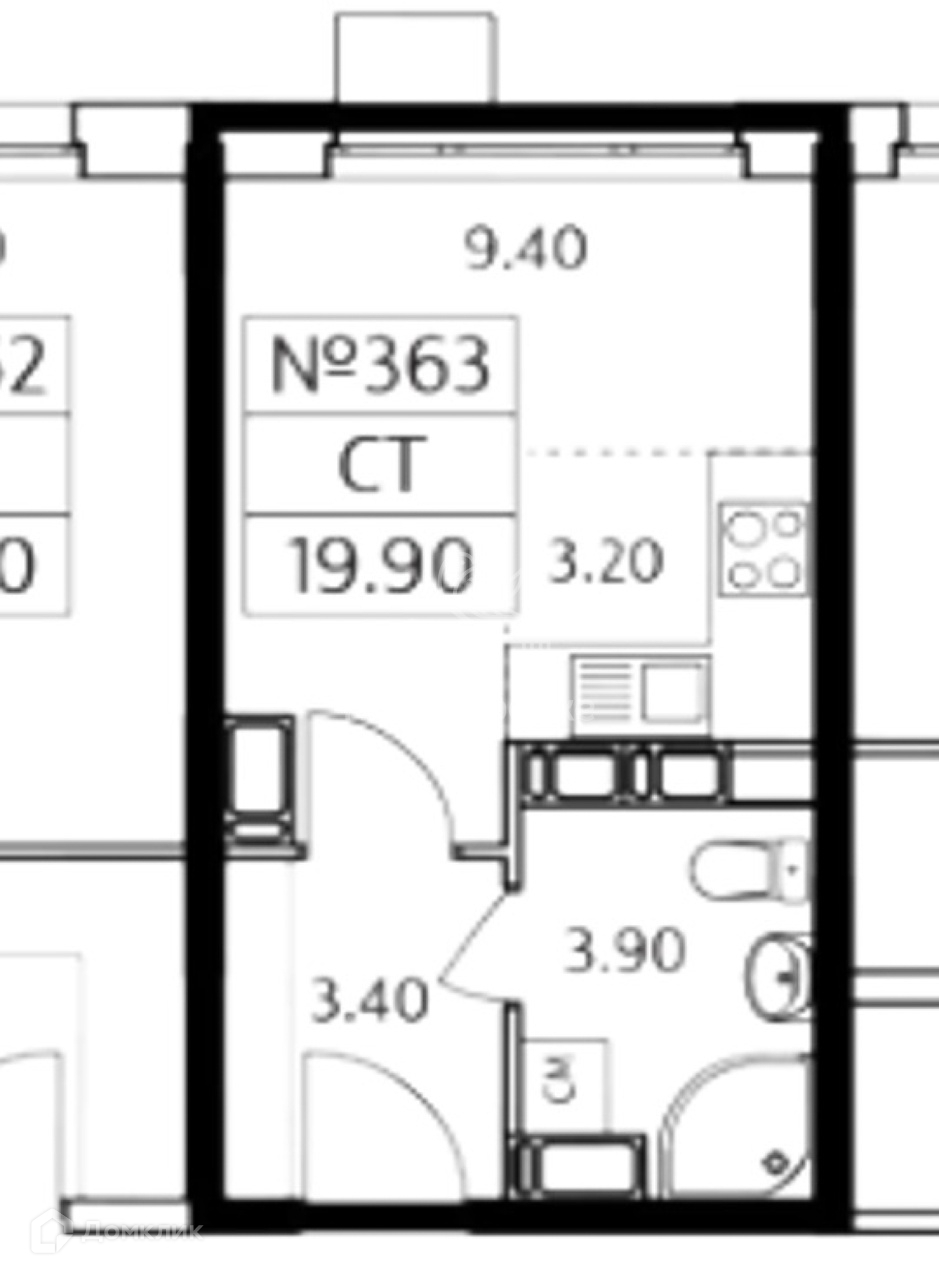 Общая площадь 19.9 м2