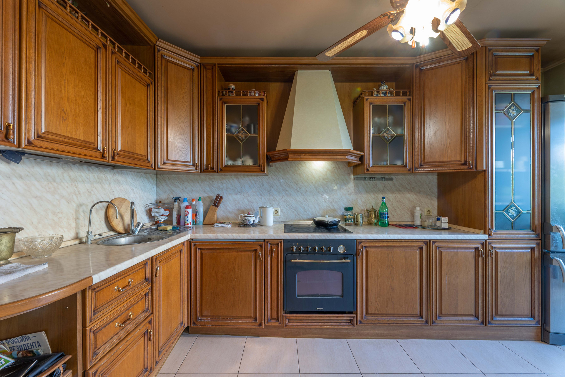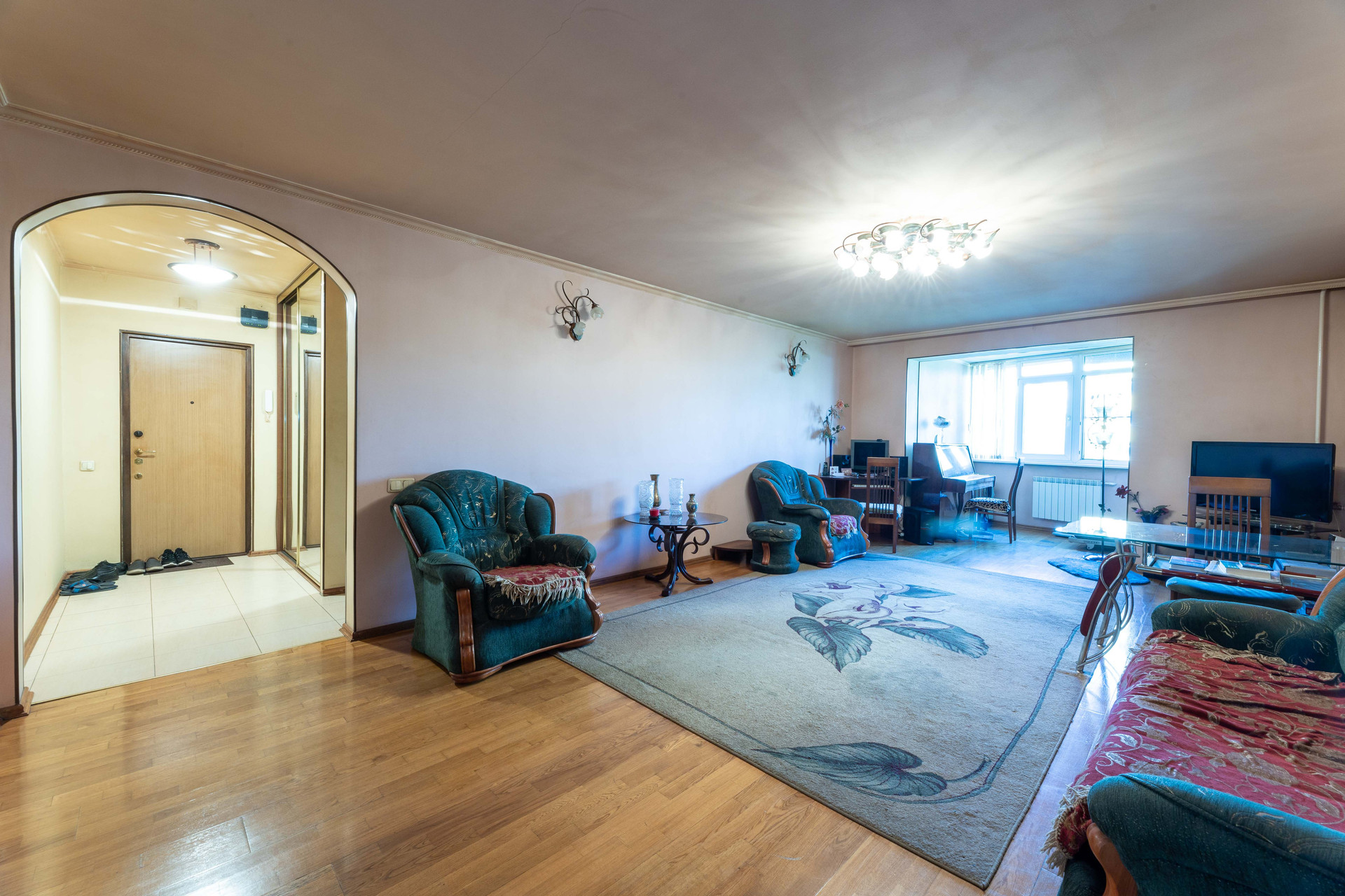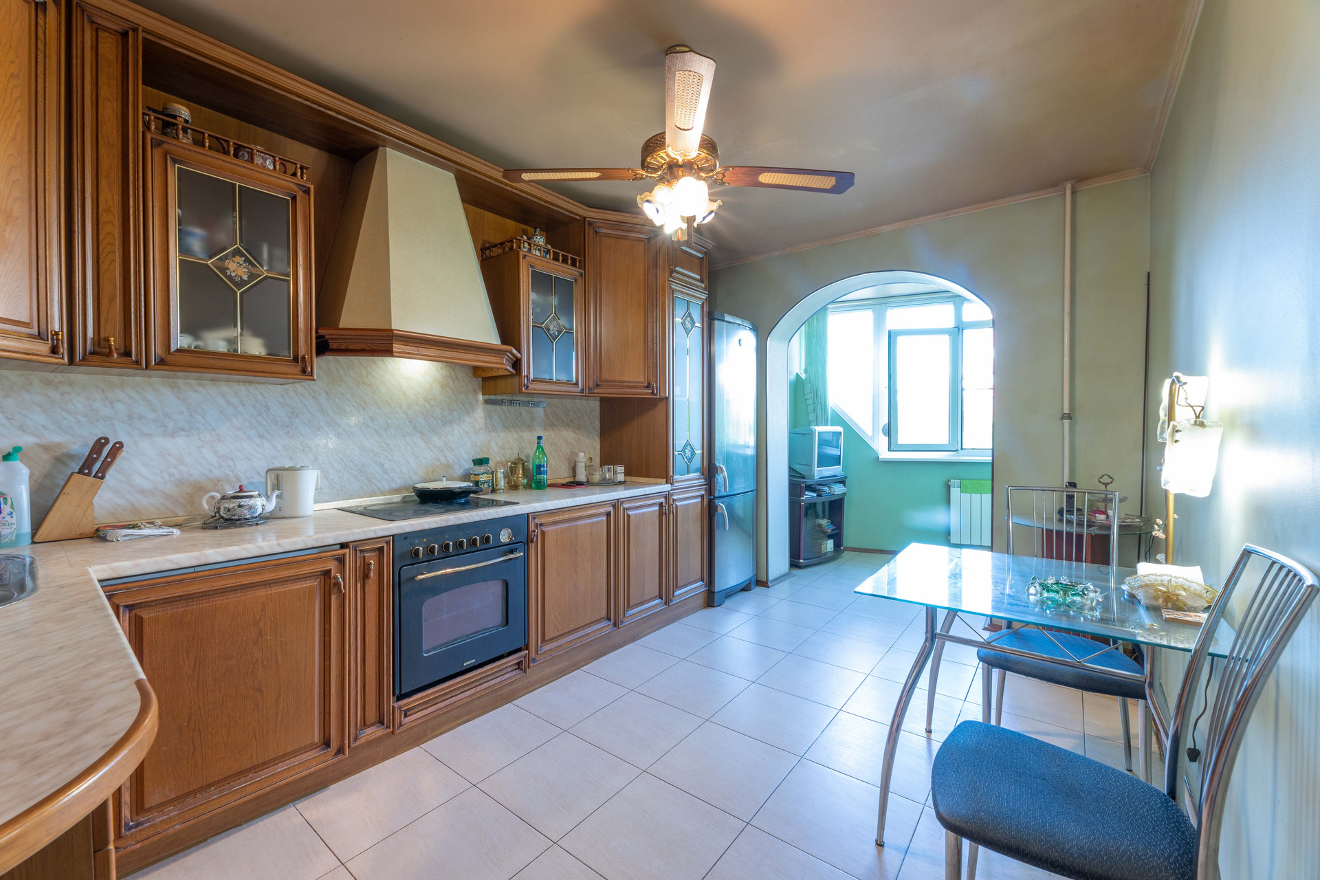 В квартире выполнен ремонт из качественных импортных материалов. Встроенную кухню из массива дерева и мебель готовы оставить новому владельцу!