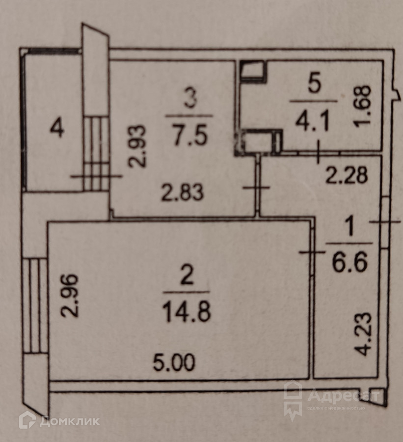 Комната 14.8 м, просторная кухня 7.5 м,  совместный санузел, прихожая.