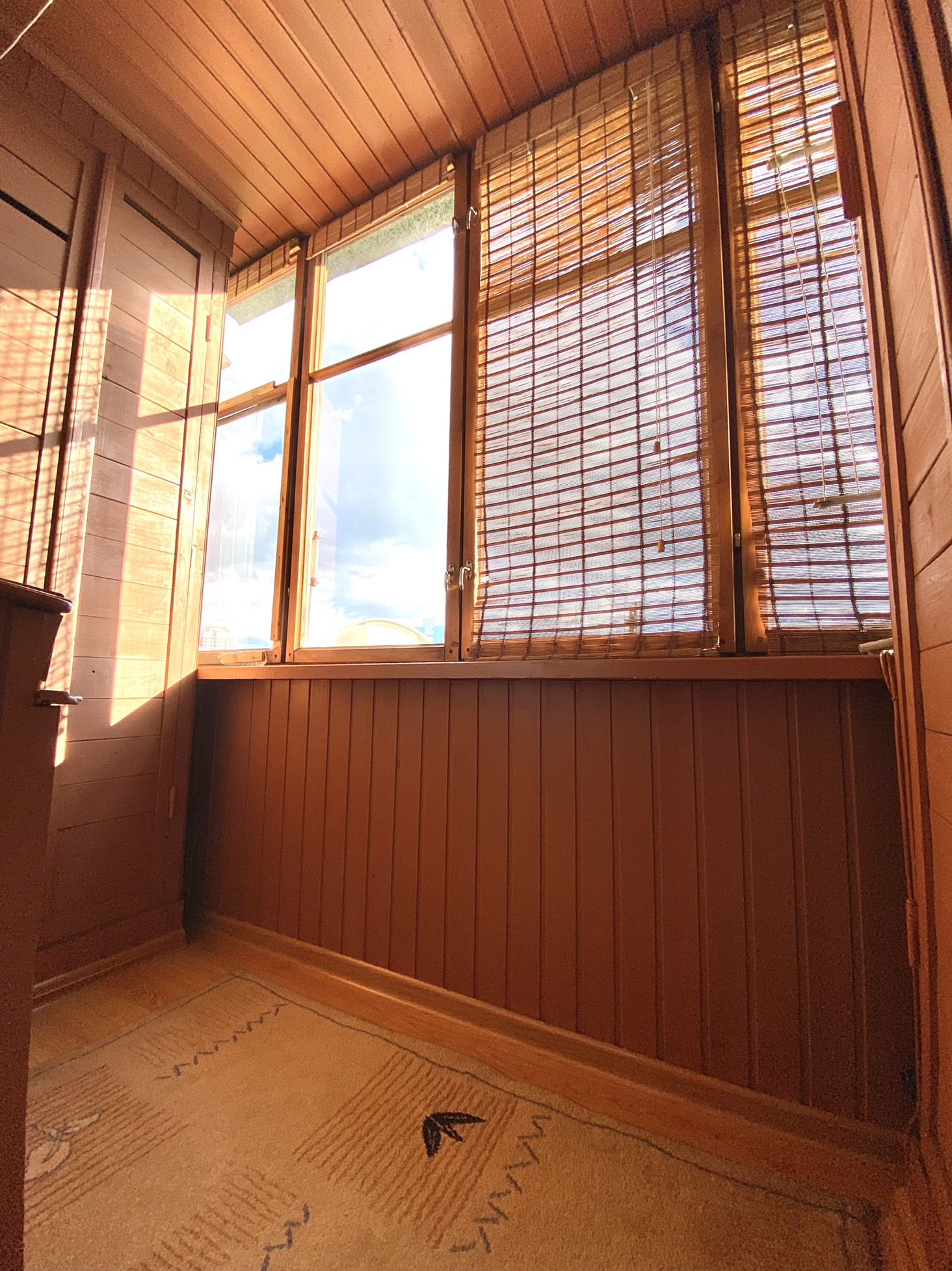 Большая лоджия застеклена, окна выходят как на тихий зелёный двор, так и на улицу, солнечная сторона, имеются парковочные места.