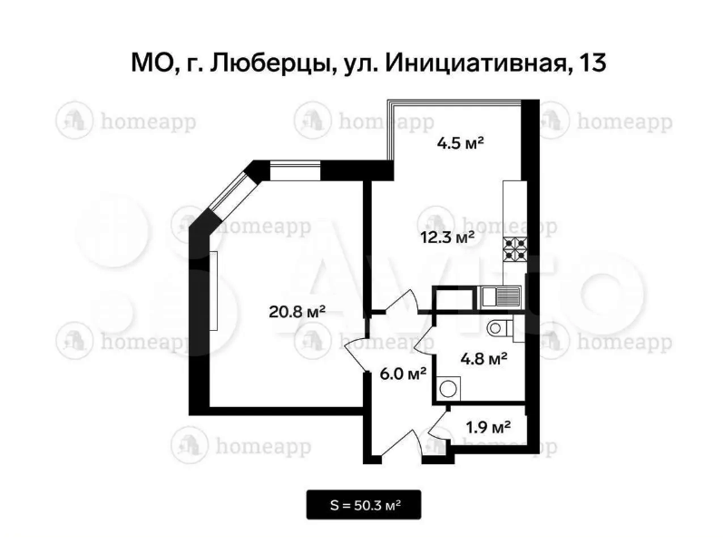 1-комнатная квартира, 50 м2, этаж 3 / 25, на продажу в Люберцах, Инициативная улица, 13
