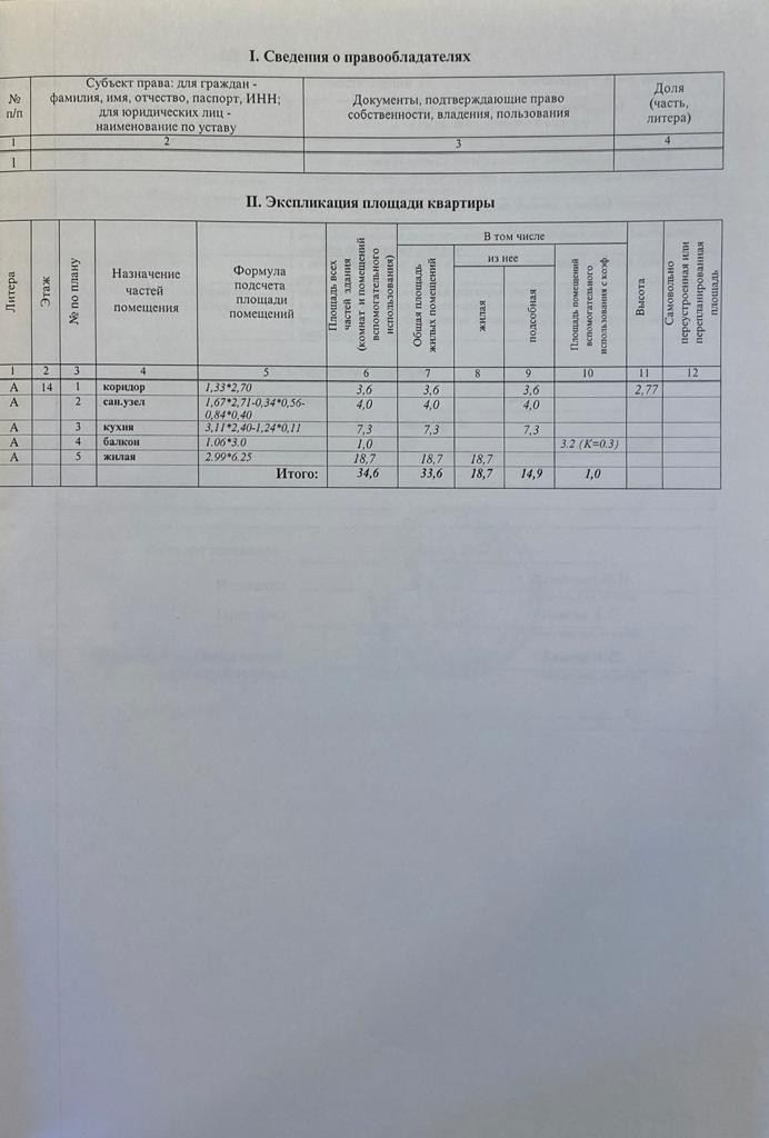 Общая площадь 33.6 м2