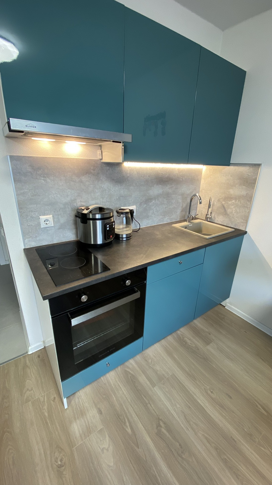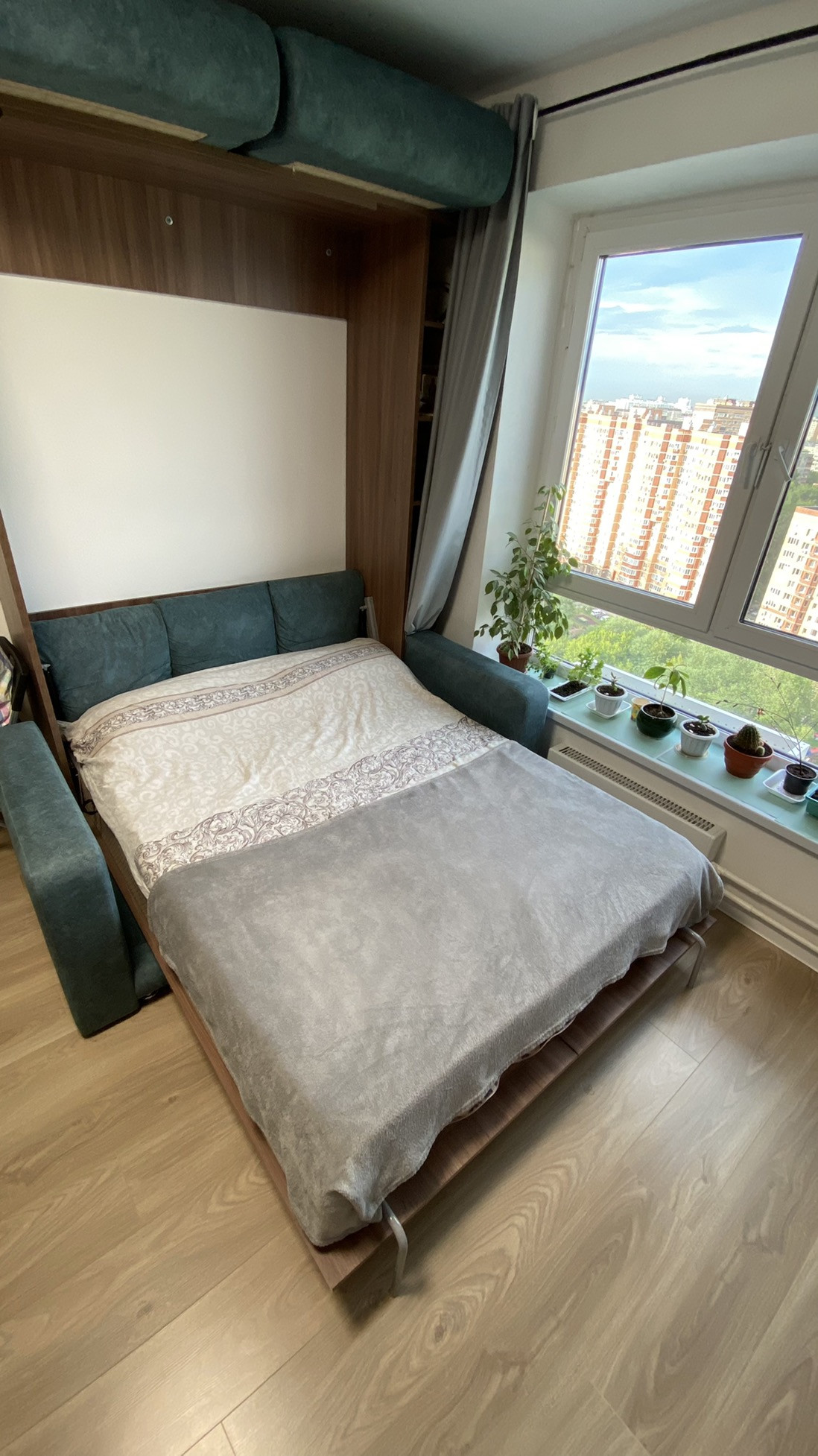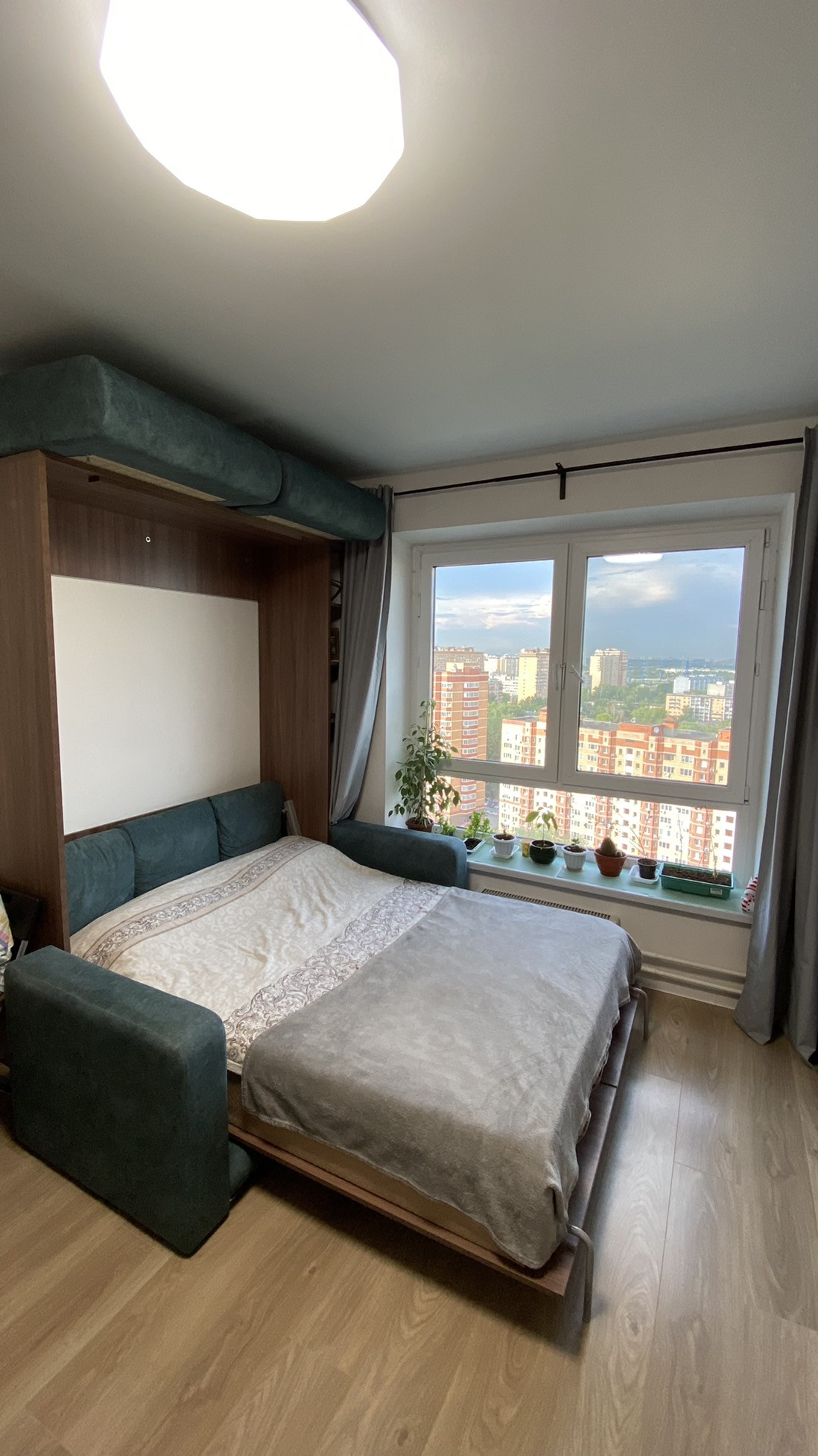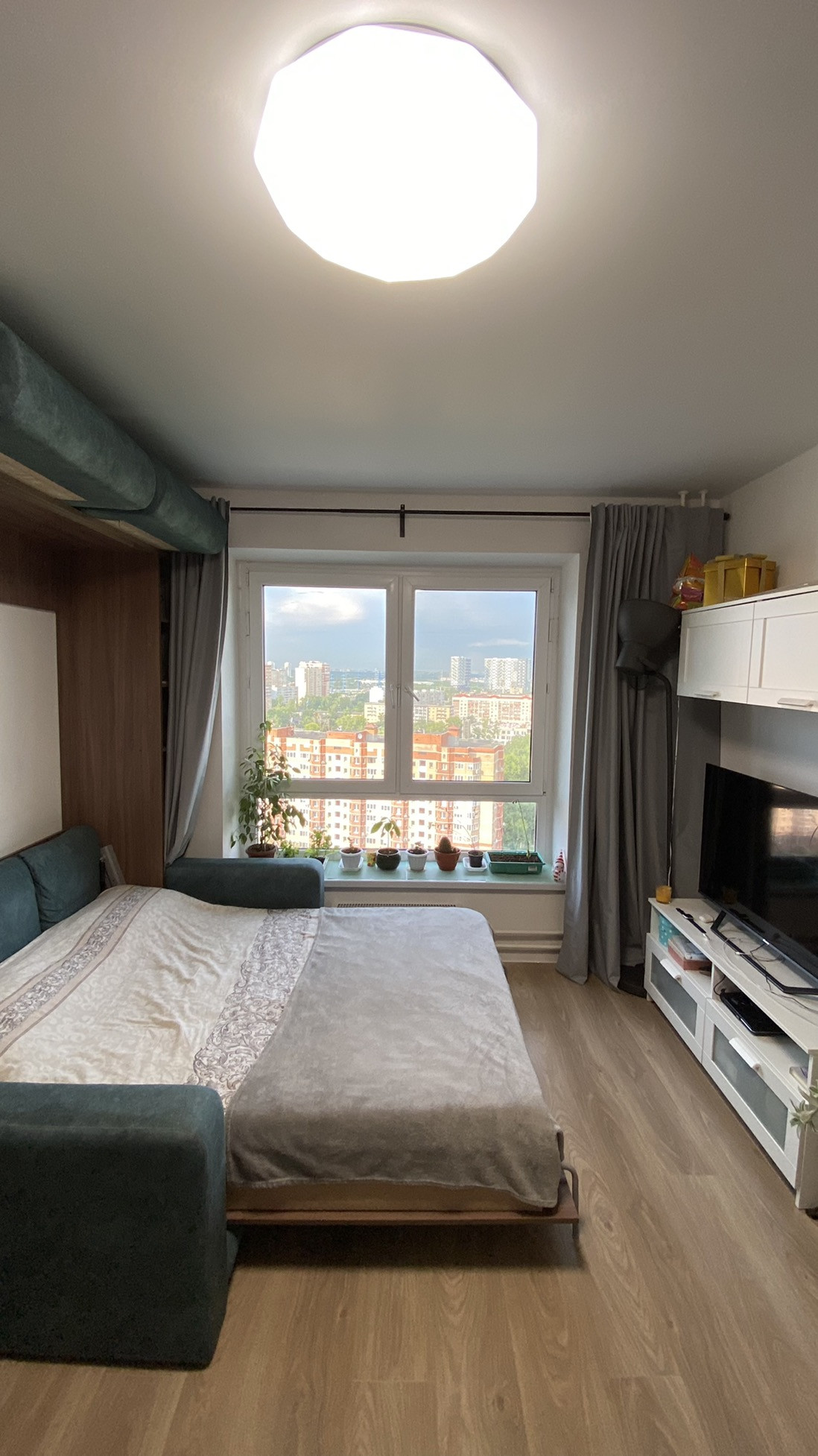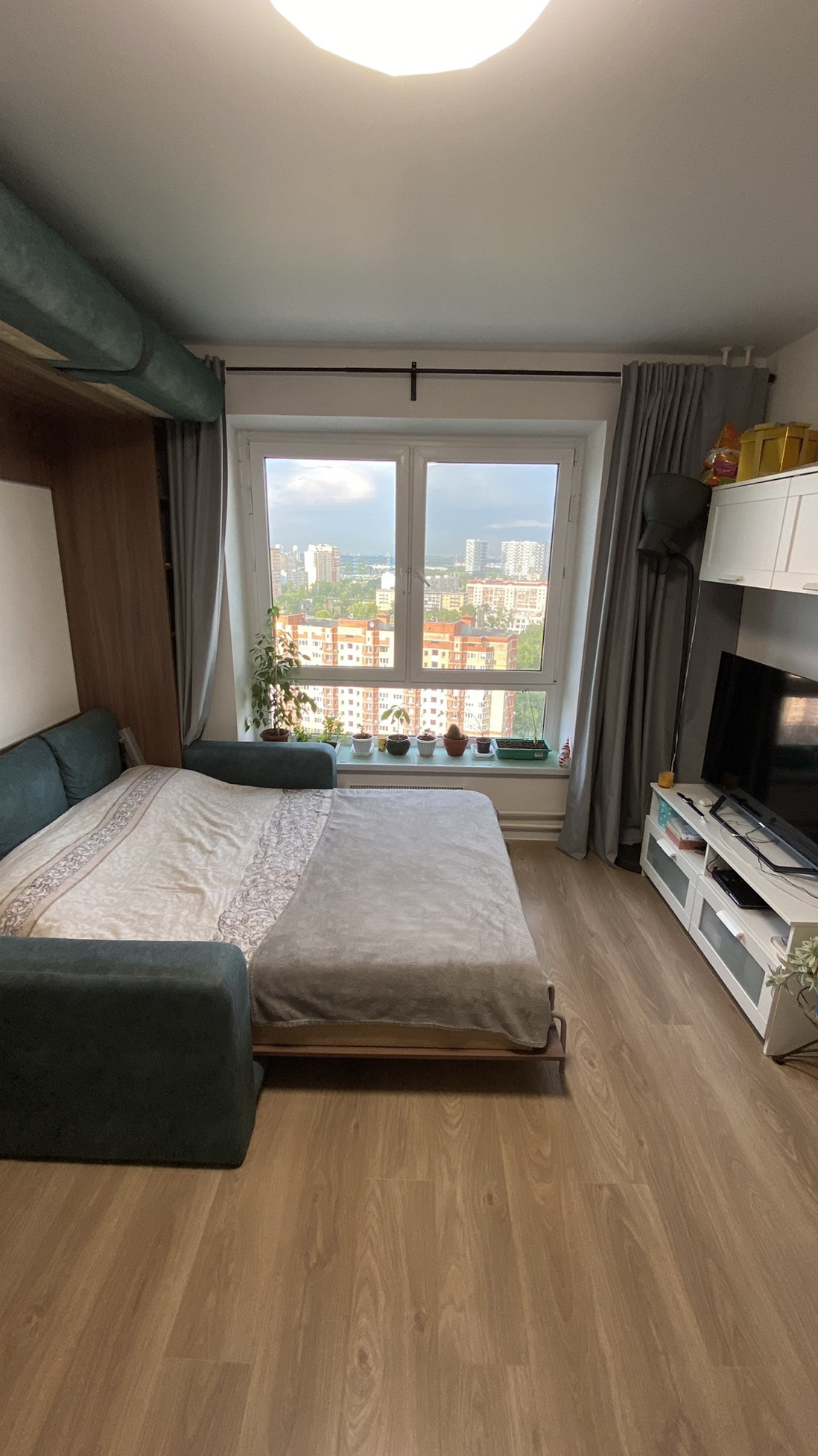Кухня, духовка, варочная панель, холодильник, кондиционер, откидные окна, москитная сетка, диван-кровать трансформер с полноценным матрасом аскона и многое другое.