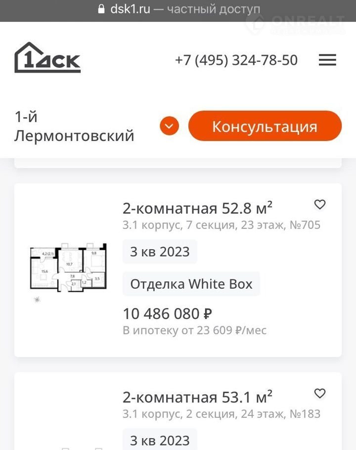Квартиры идентичной квадратуры у застройщика стоимостью от 10 млн