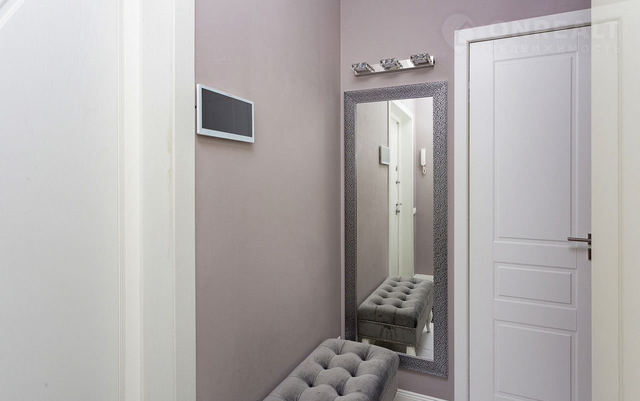 В квартире удобный холл, вместительная, оборудованная гардеробная и надежная, красивая входная дверь.
