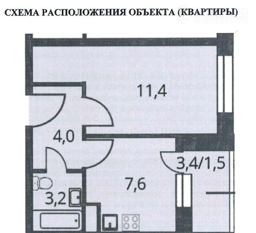 Жилая площадь 11.4 м2