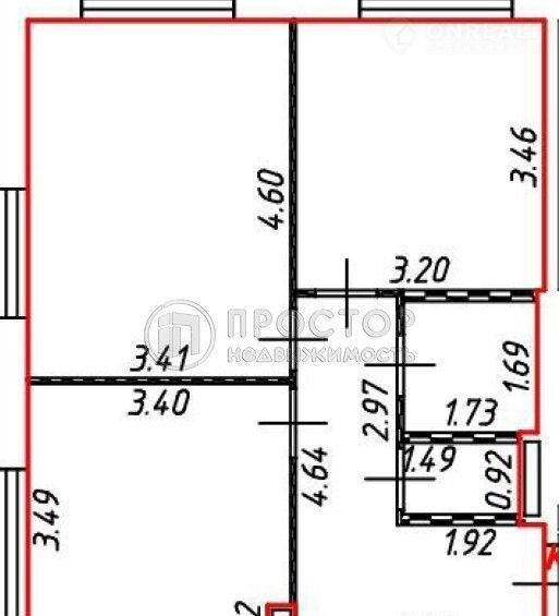Общая площадь 52 м2