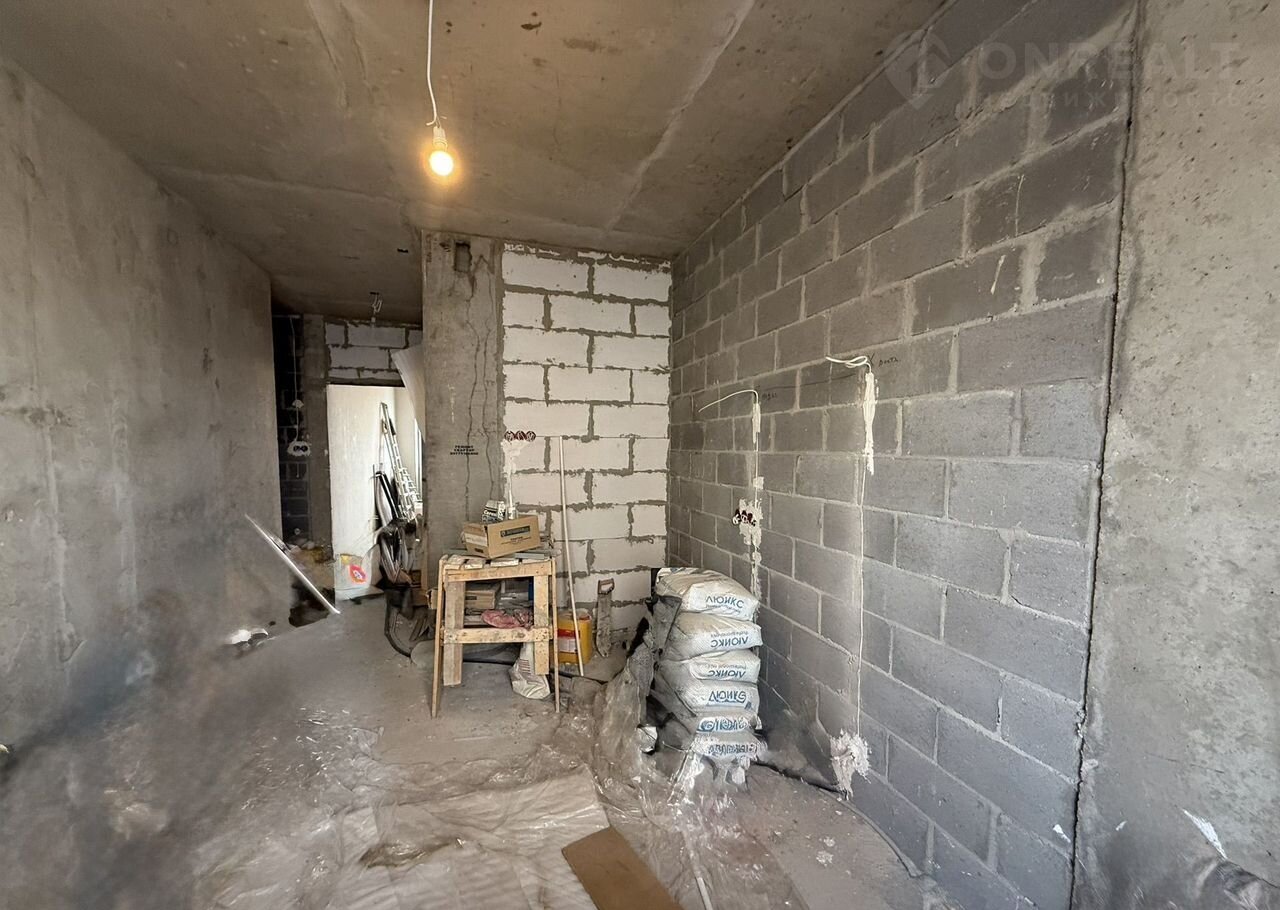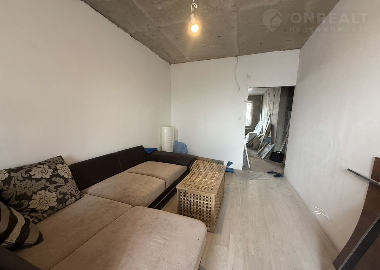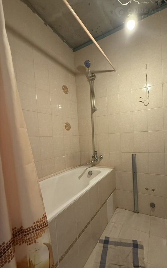 В квартире частично сделан ремонт: в комнате стены готовы к финишной отделке, на полу ламинат, санузел облицован кафелем. На кухне есть все материалы для ремонта.