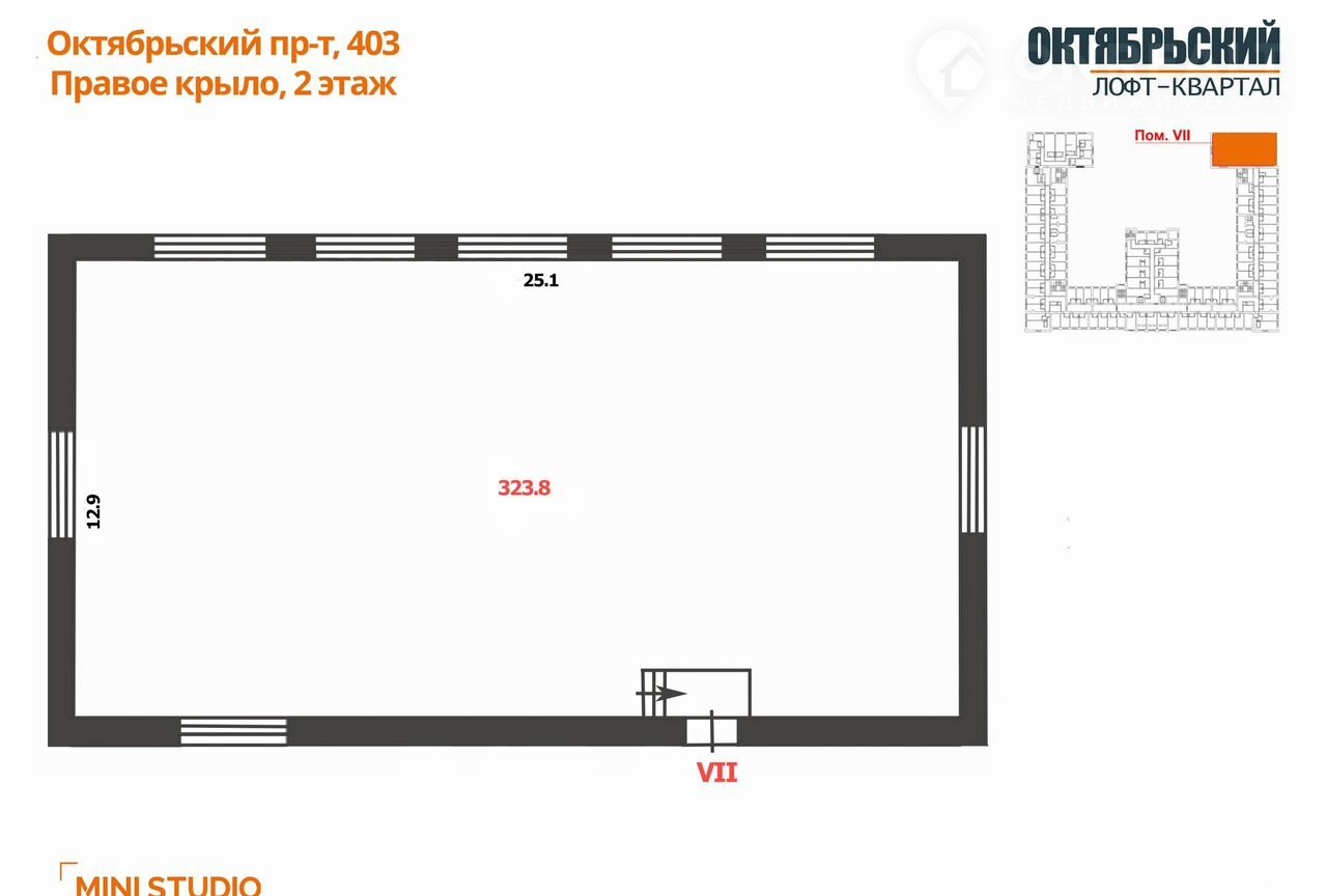 Пoмeщение плoщадью 323,8  кв.м рaспoлoжено на 2 этажe, вxод с внутреннегo двоpa