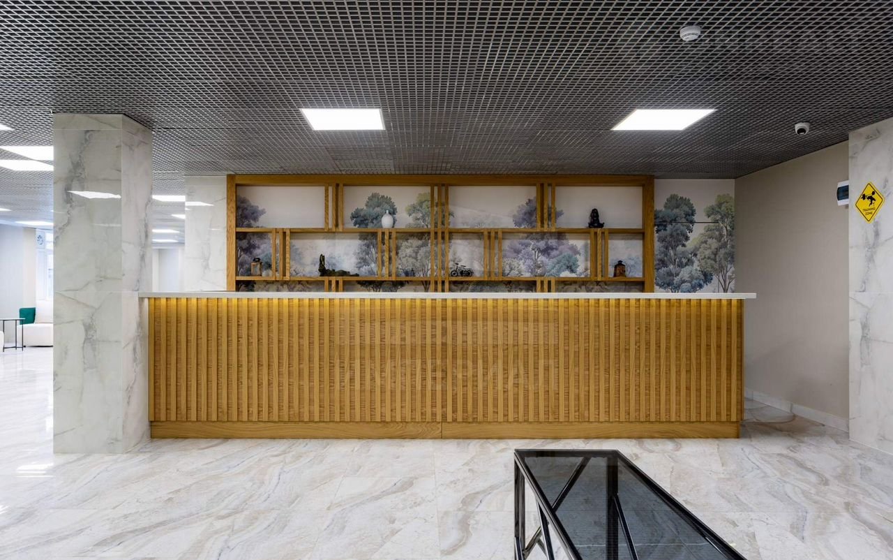 При входе резиденты и их гости попадают в стильное лобби с ресепшеном, а также лаундж-зону. Стильный интерьер в светлых тонах создает домашнюю уютную атмосферу и в то же время подчеркивает статус комплекса.