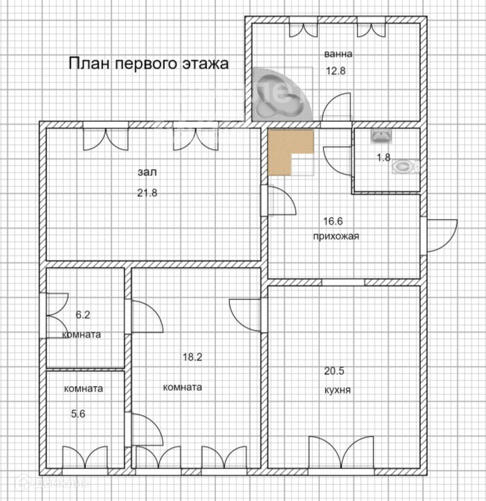 - 4 комнаты расположены на первом этаже и две на втором.