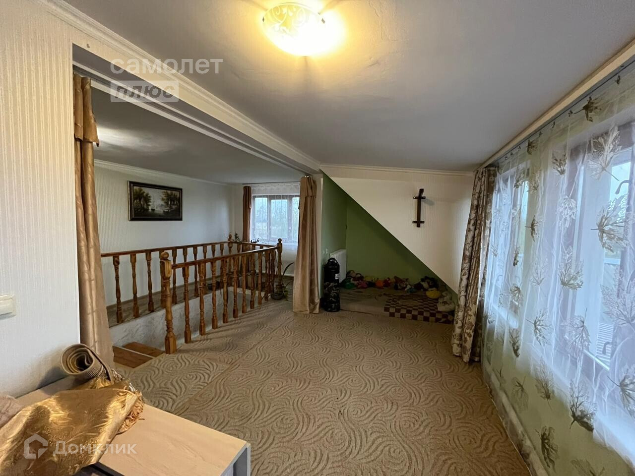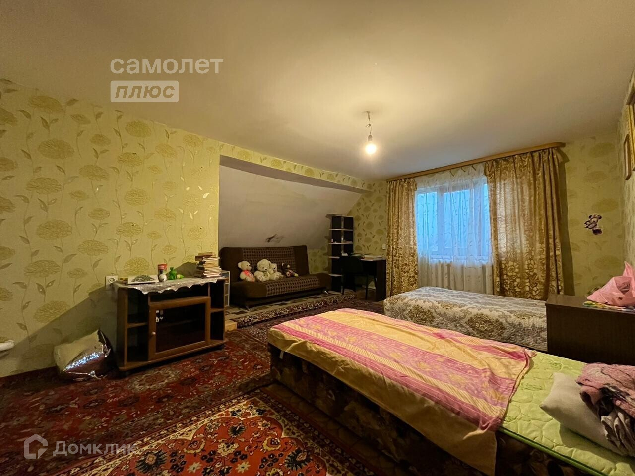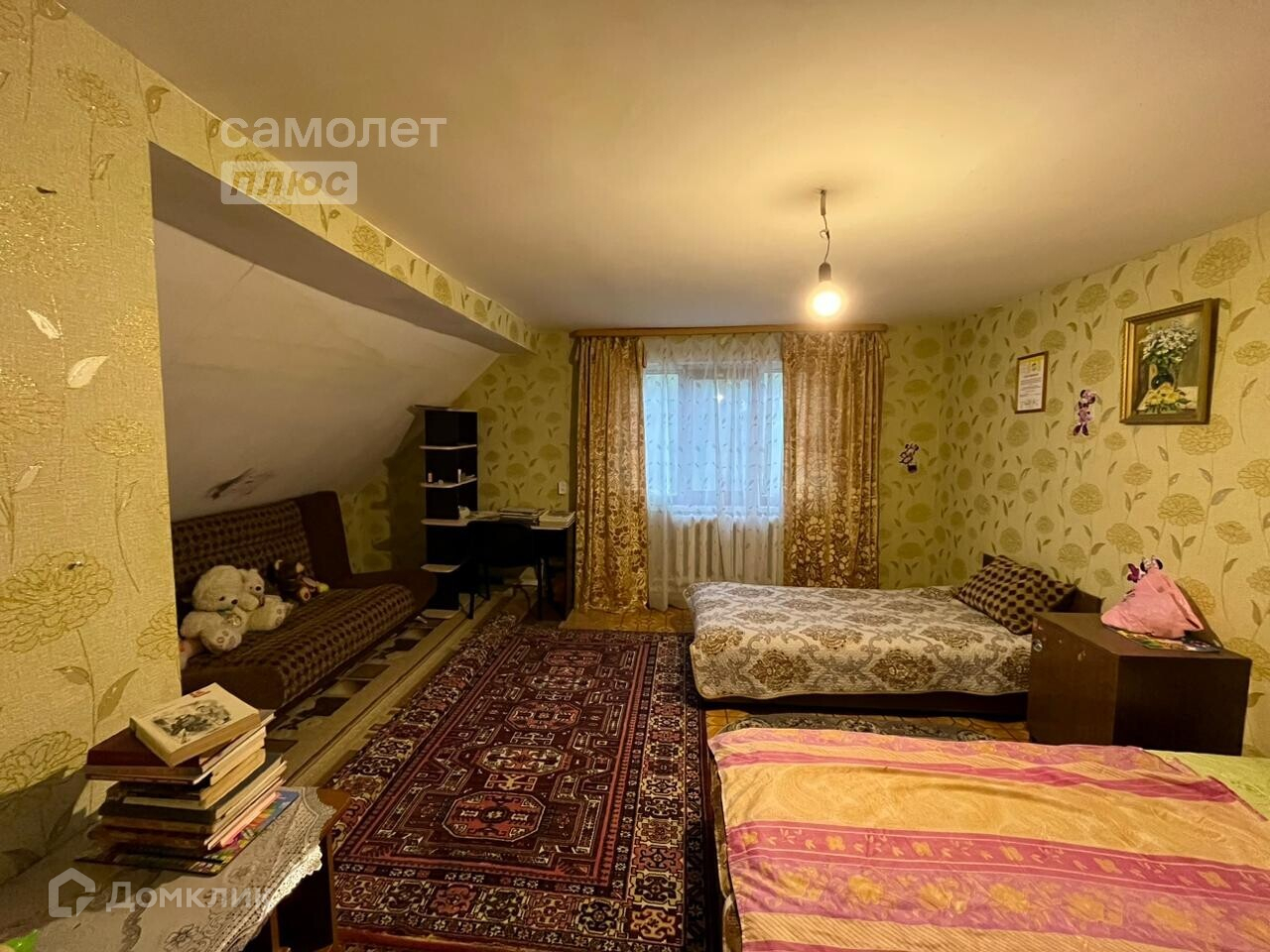 - В доме есть 6 комнат, общая жилая площадь - 90кв.м.. Комнат хватит на всех.