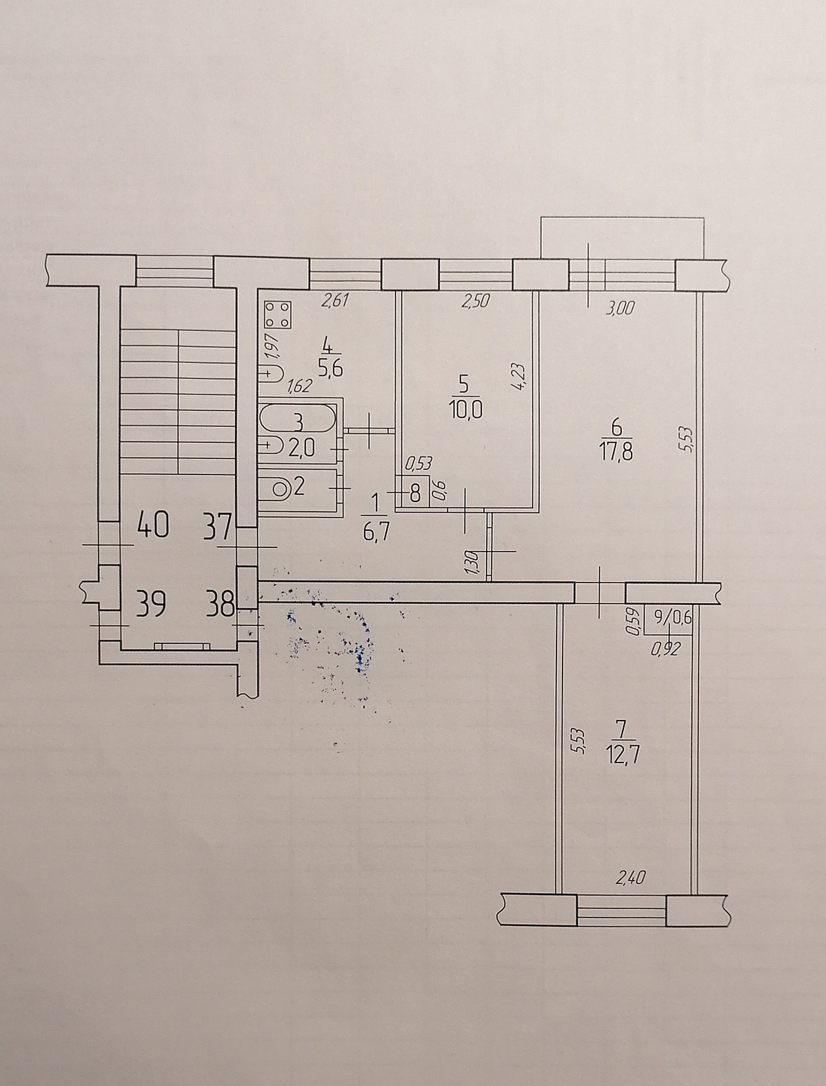 Жилая площадь 40.5 м2