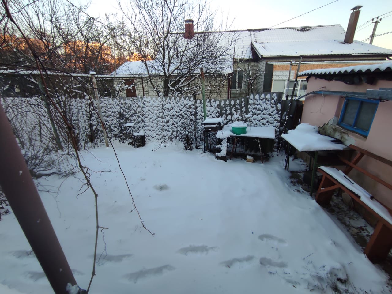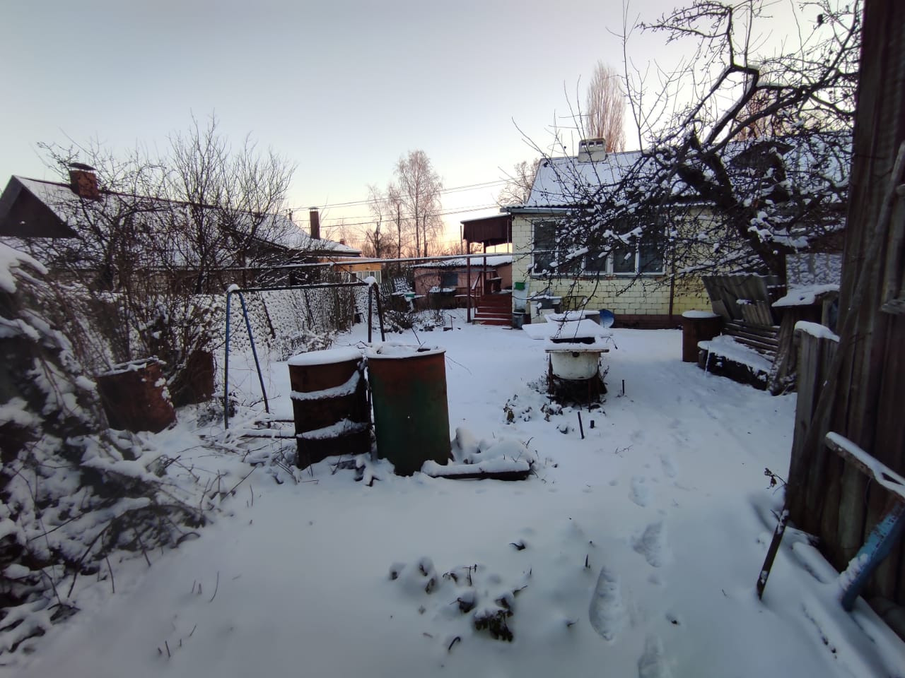 Отмостки, пороги забетонированы, высокое крыльцо.