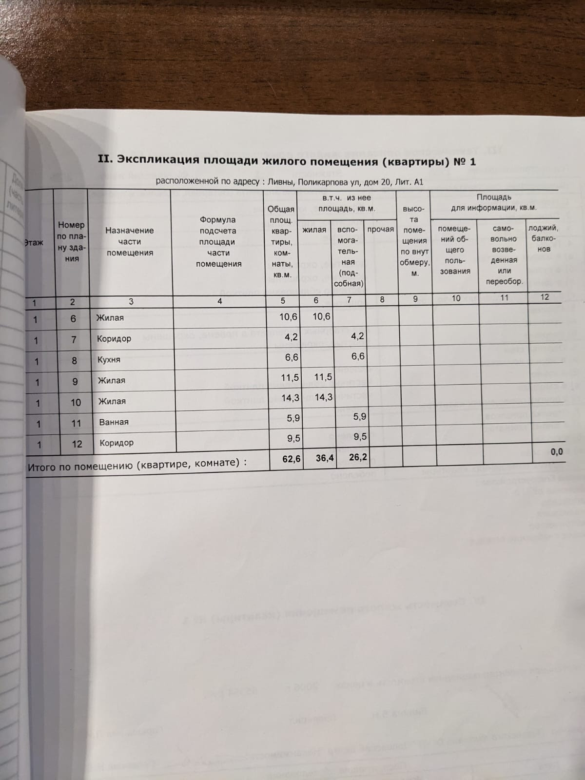 Общая площадь 62.6 м2