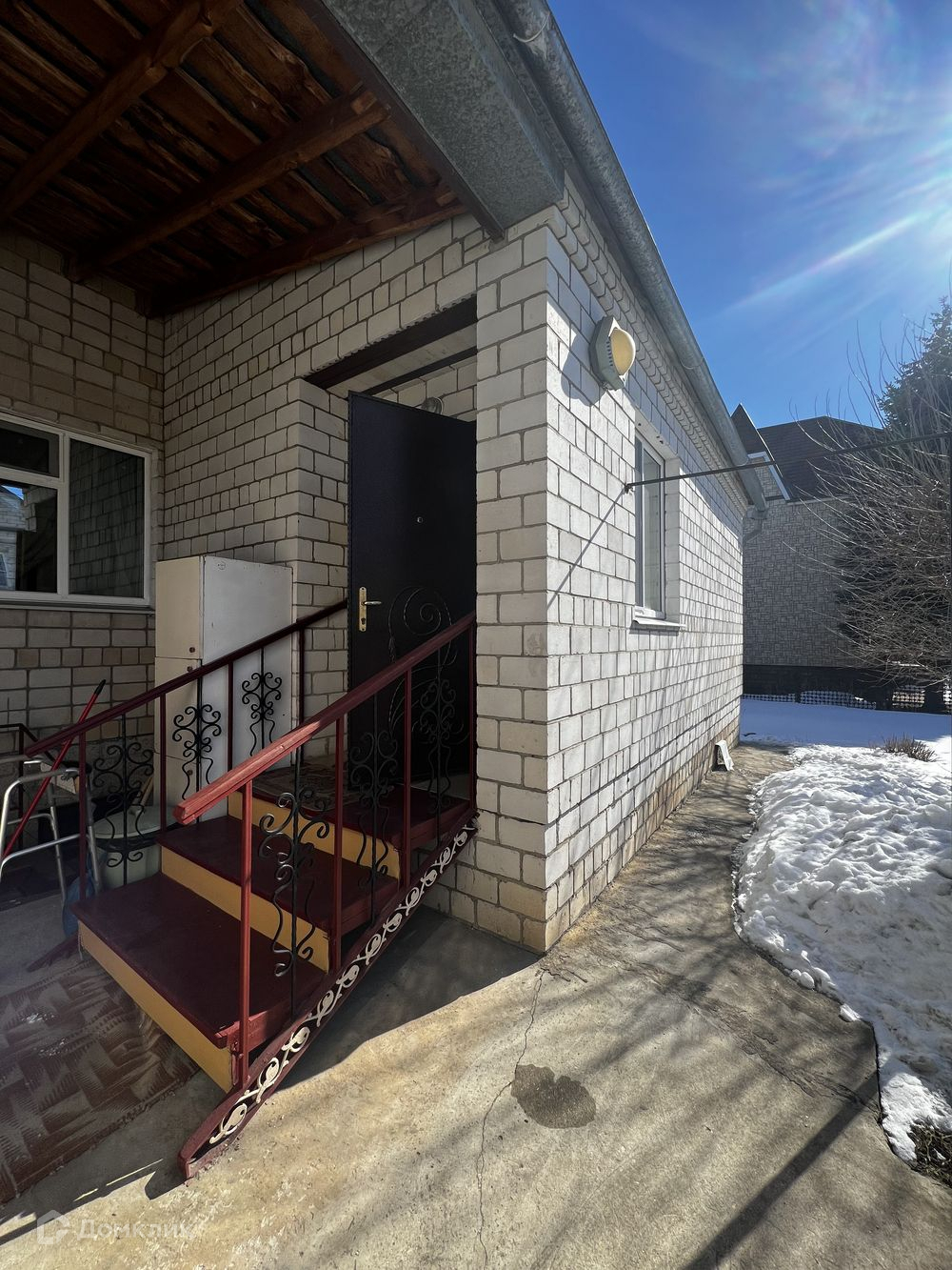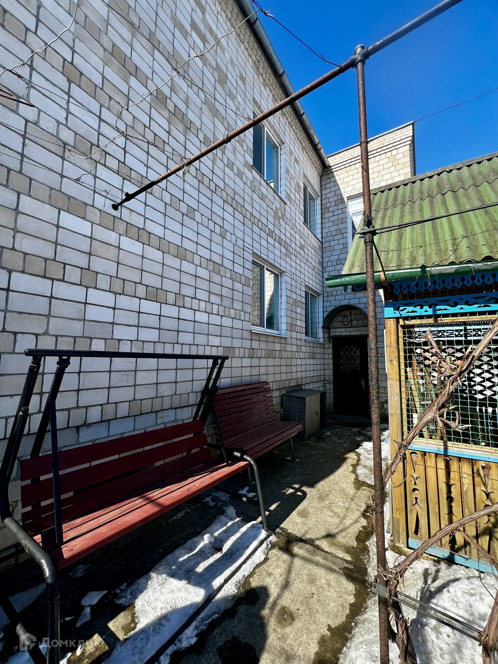 Сам дом построен на блочном фундаменте из силикатного кирпича в два ряда толщиноЙ 50 см, перекрытия плиты, крыша шифер, что обеспечивает комфортное проживание в любое время года.