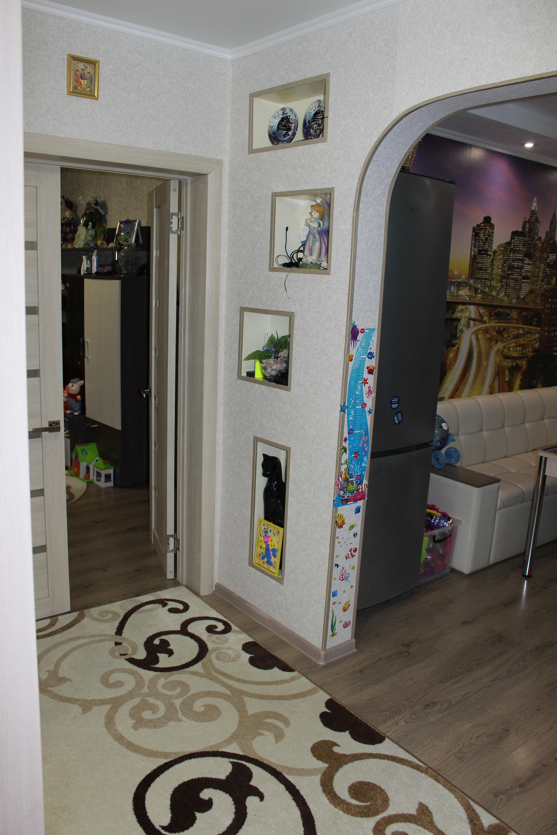 Продается 3х-комнатная квартира (гостиная, совмещённая с кухней, перепланировка законно оформлена), вложений не требует, на кухне и в ванной - теплый пол, индивидуальное отопление.