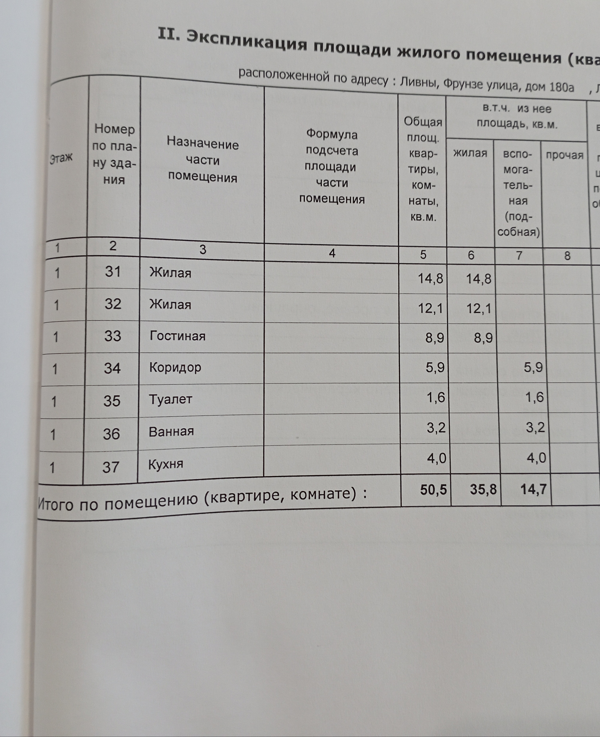 Общая площадь 50.5 м2