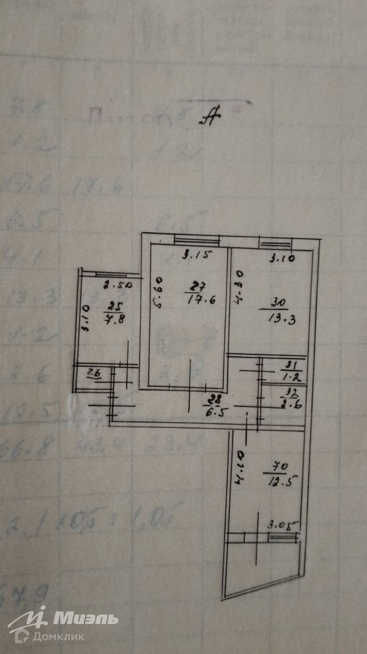 Жилая площадь 43.4 м2