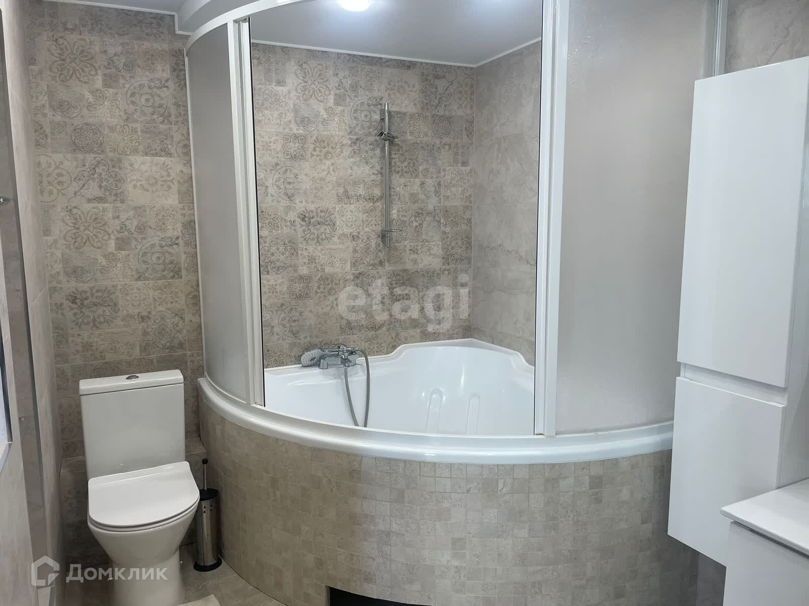 Санузел, ванна и туалет выложены кафелем.