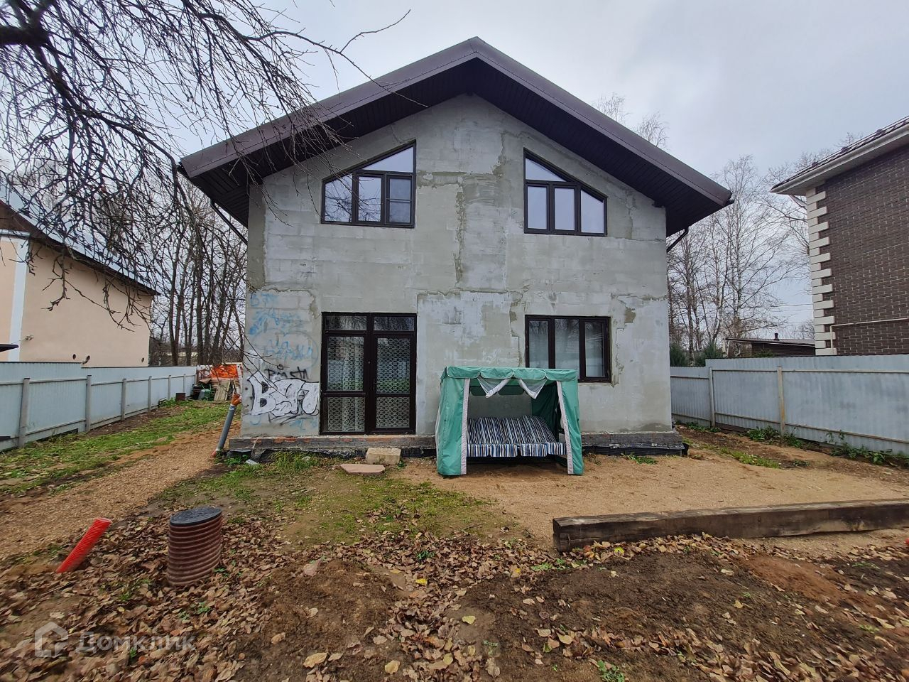 УЧАСТОК прямоугольный, ровный, засеян газоном, передняя часть отсыпана щебенкой, остается тротуарная плитка для обустройства въездной группы. Калитка, автоматические ворота.
