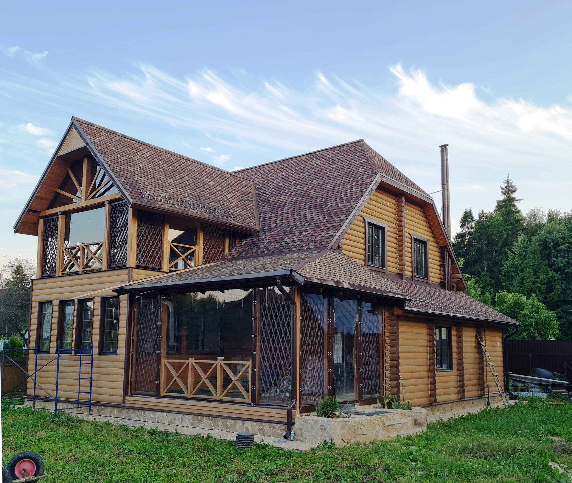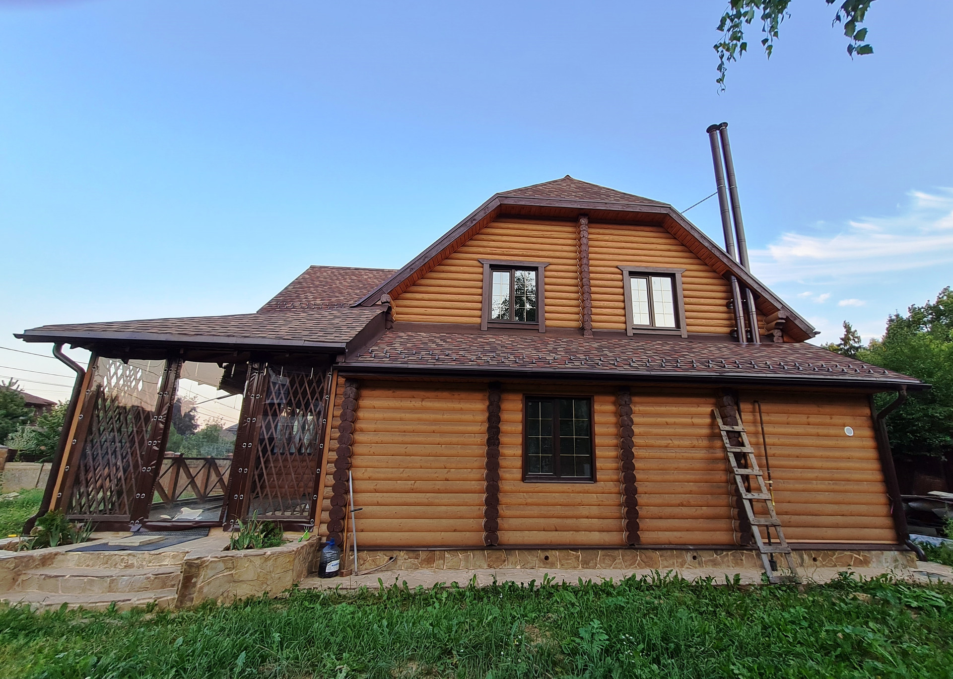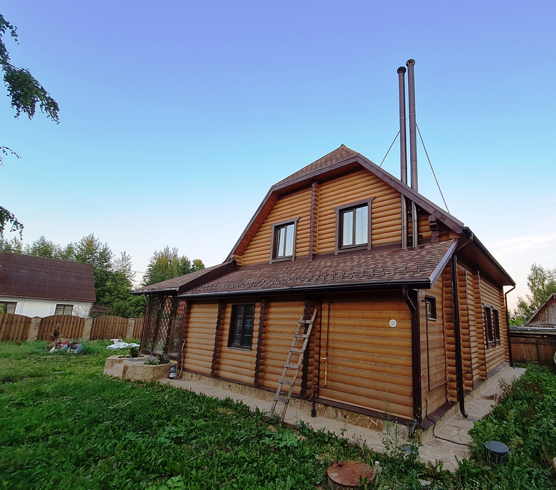 Предлагаем приобрести новый 2х-этажный дом из оцилиндрованного бревна - высококачественного и экологически чистого материала. Дом газифицирован! Планировка: 1-й этаж - терраса, кладовая, бойлерная, гардеробная, санузел, сауна, гостиная, кухня-столовая, зимний сад; 2-этаж - 3 спальни, санузел, постирочная и балкон. Кол-во спален можно, по желанию, увеличить. Метраж указан без учёта террасы и балкона. Участок прямоугольный, на нём расположена зона барбекю с колодцем (12 колец), выполненными в единой концепции, а также летний домик (можно использовать для временного размещения строителей). Электричество 15 кВт, есть септик с переливным колодцем с выходом за пределы участка в общий коллектор. На участке две дренажные системы: по периметру дома и по периметру участка. Водопровод - скважина, вода заведена в дом. Дом газифицирован. Отопление с коллектором. Есть вентиляционные системы бойлерной и кухни. На въезде площадка для стоянки 2х машин. Качественный забор и ворота. Посёлок расположен в живописном месте,с выходами в поле и в лес, рядом зона отдыха с пляжем, рестораном и рыбалкой. Территория посёлка закрыта шлагбаумом. Смотрите ВИДЕО и фото-материалы, планировку.